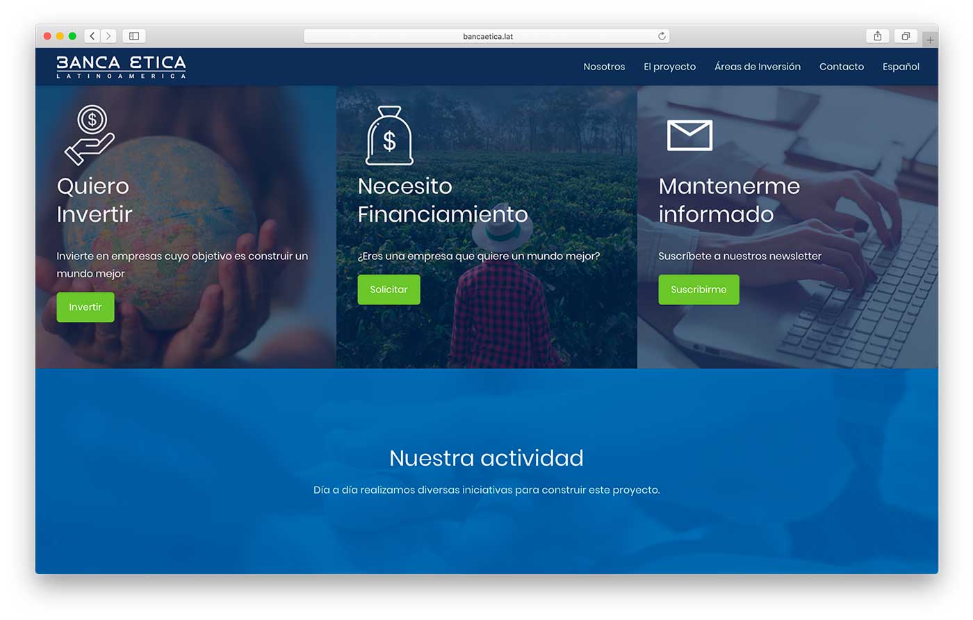 Sitio Web con administrador de contenidos para Banca Ética Latinoamérica.